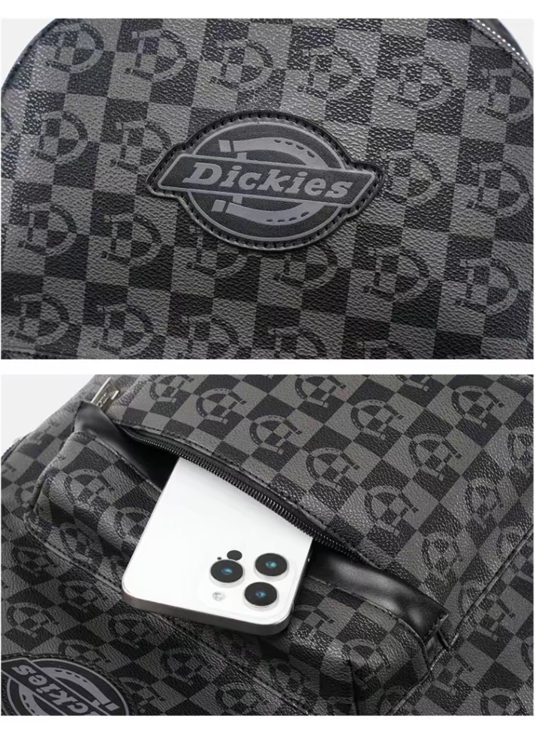 Dickies 滿版老花 後背包 黑灰 深灰 皮革 復古 雙肩包
