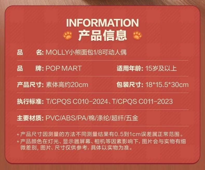 <官方正版授權>POPMART MOLLY Bear Bread Action Figure 小熊麵包 1/8 可動人偶 茉莉 泡泡瑪特