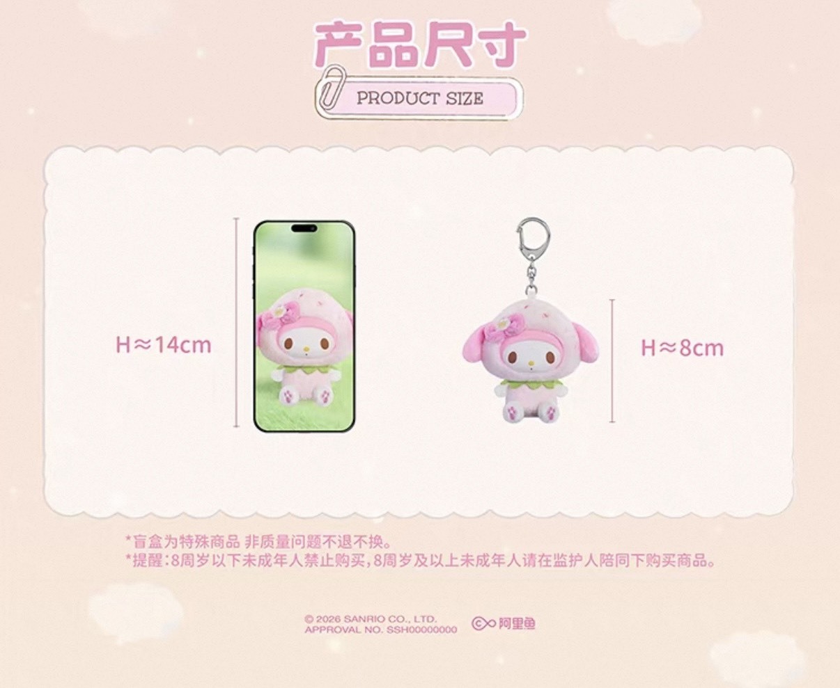 <正版授權>三麗鷗 SANRIO 草莓毛絨 吊飾 盲盒 吊飾 掛件 共12+2款