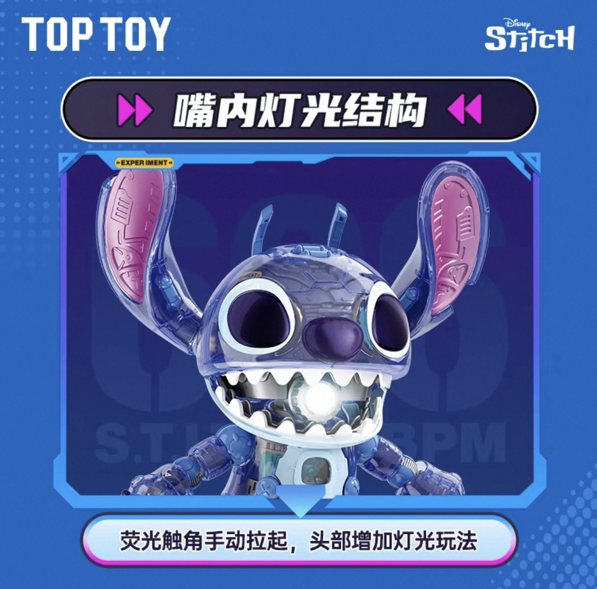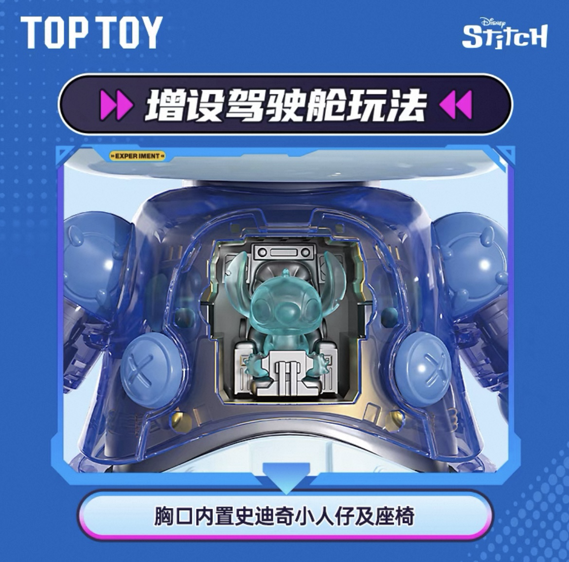 🔹四肢及耳朵關節都可動,半透明外殼更創新,有設計駕駛艙可放進史迪奇小人