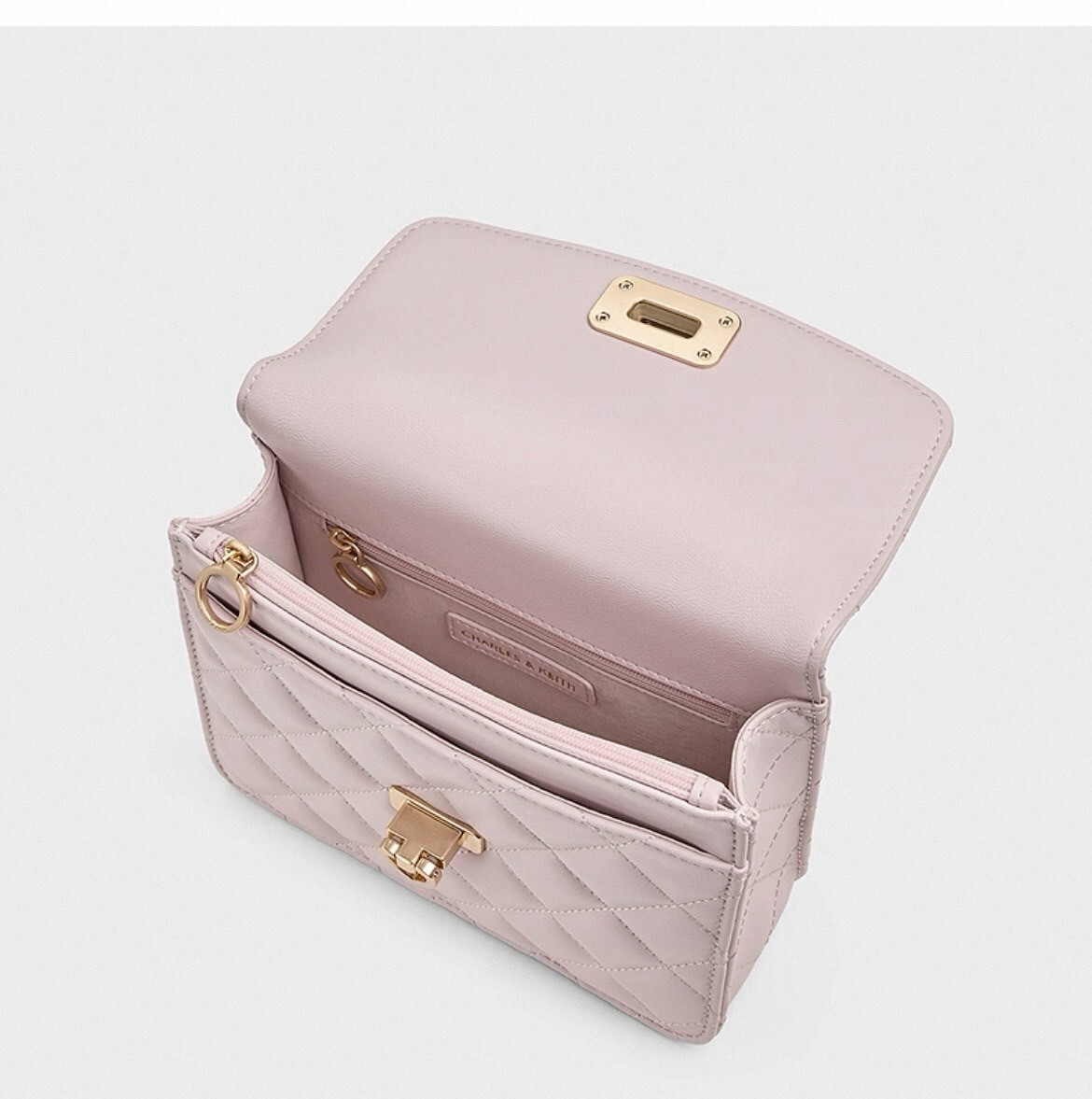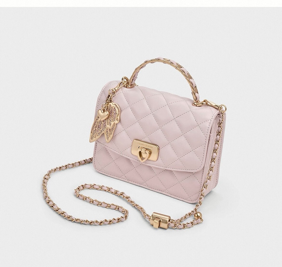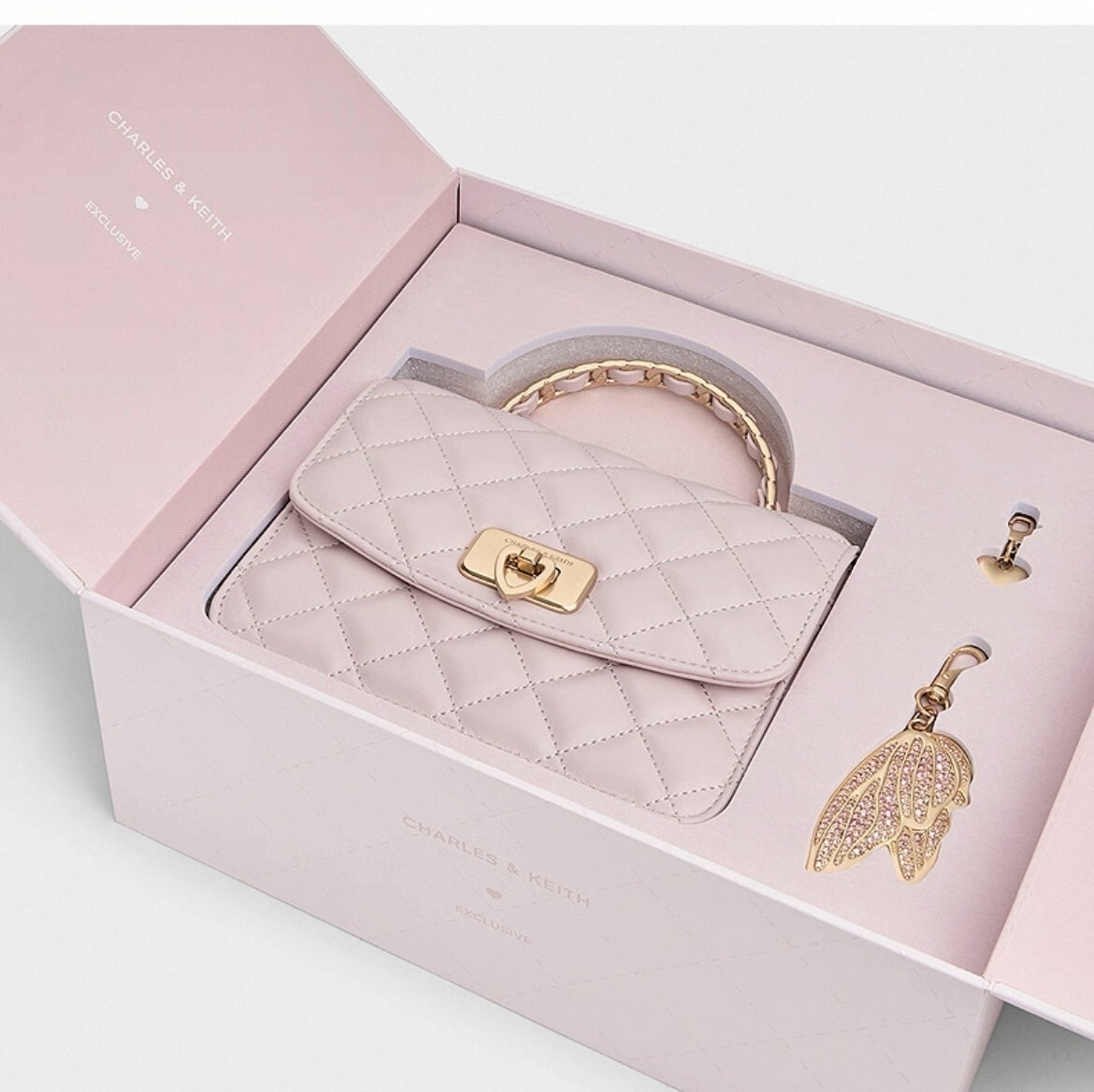 CHARLES & KEITH 小CK 七夕限定禮盒 菱格小方包 粉色 鍊條包 肩背包
