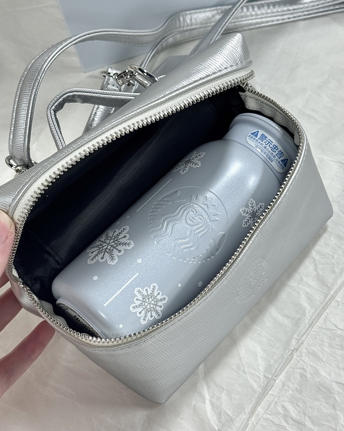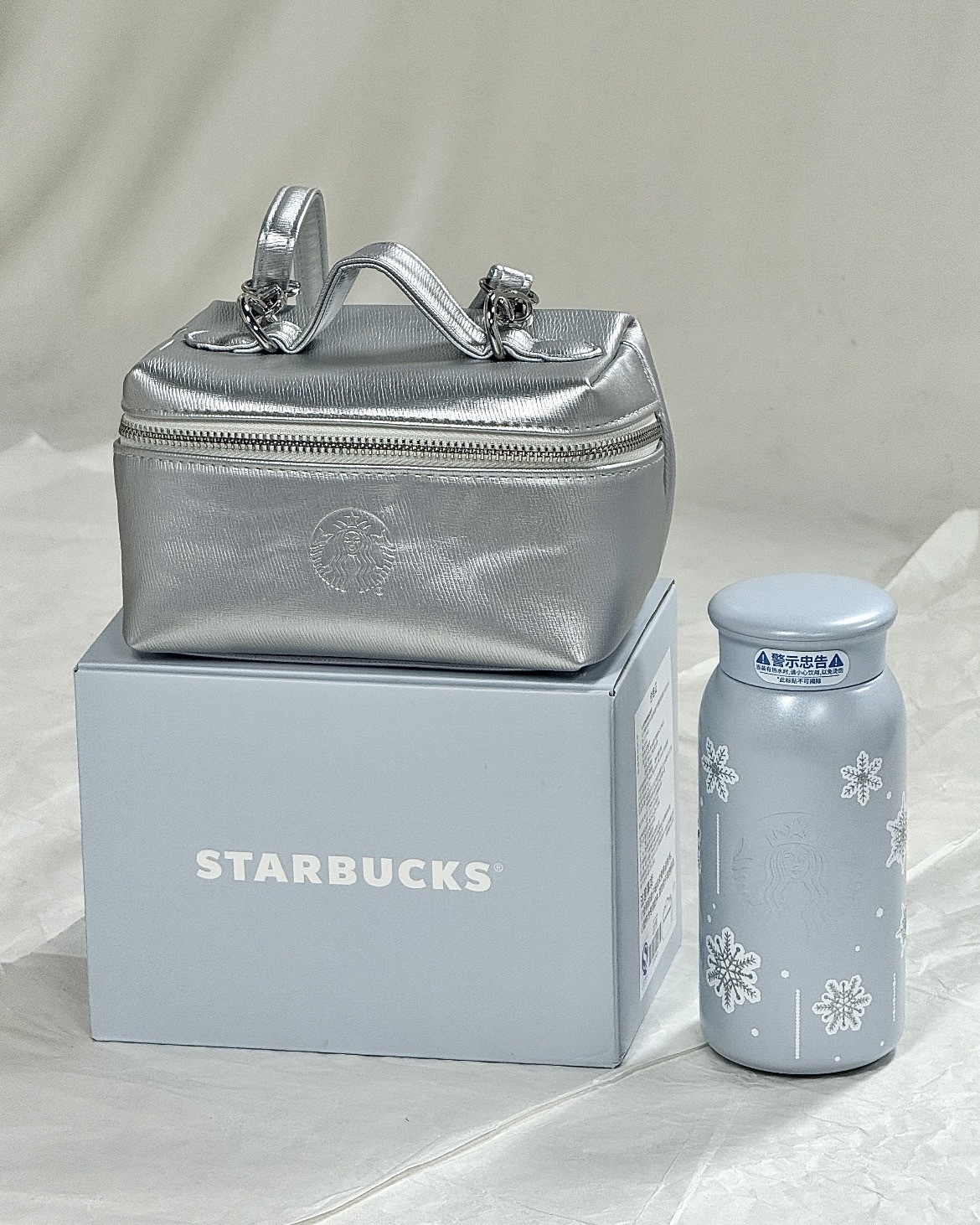 4.雪花不鏽鋼杯+銀色方形小包(容量355ml)